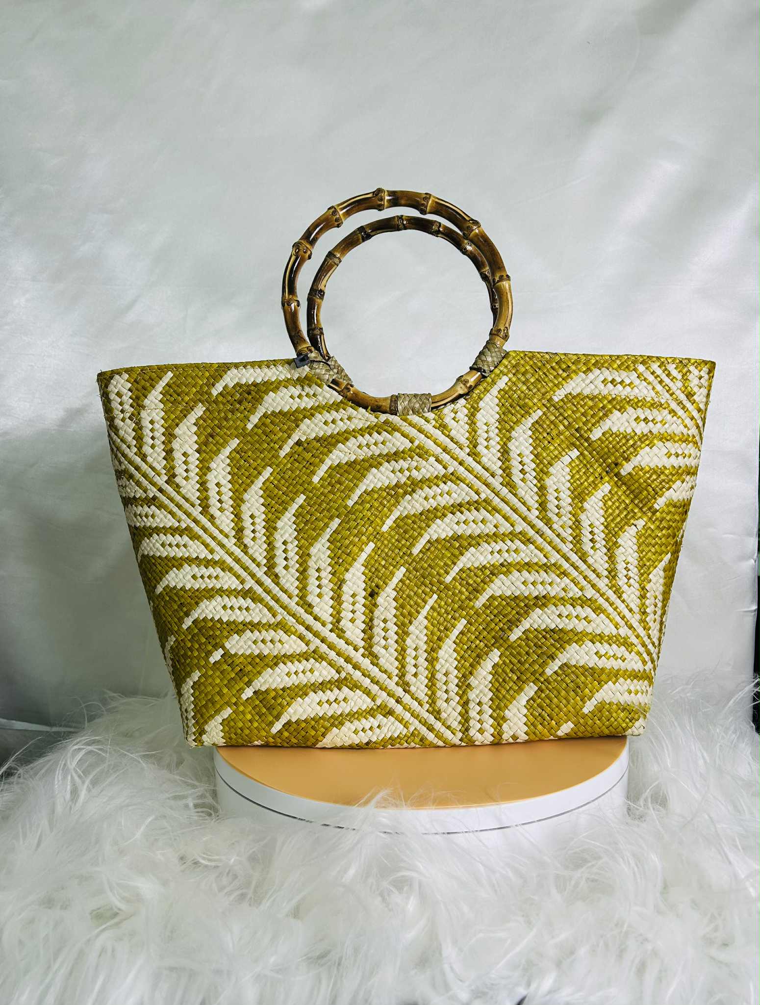 Medium Handwoven Banig Handbag with Round Bamboo Handle