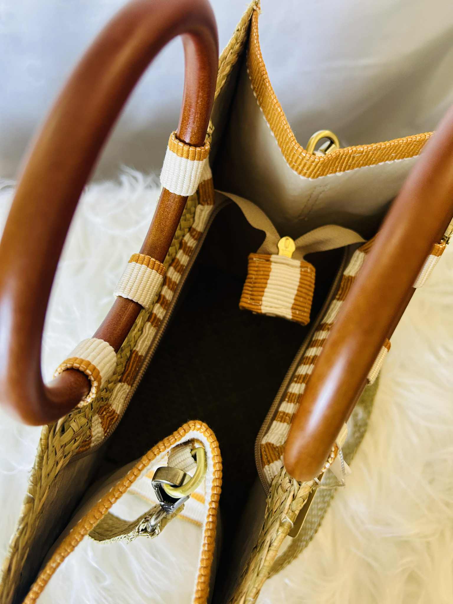 Larabel Small Tote with Wooden Handle and Detachable Strap