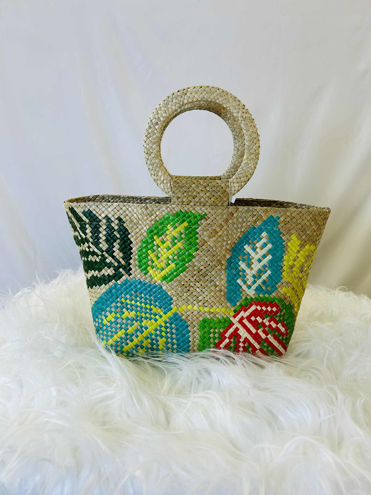 Small Handwoven Banig Tote Bag with Round Handle